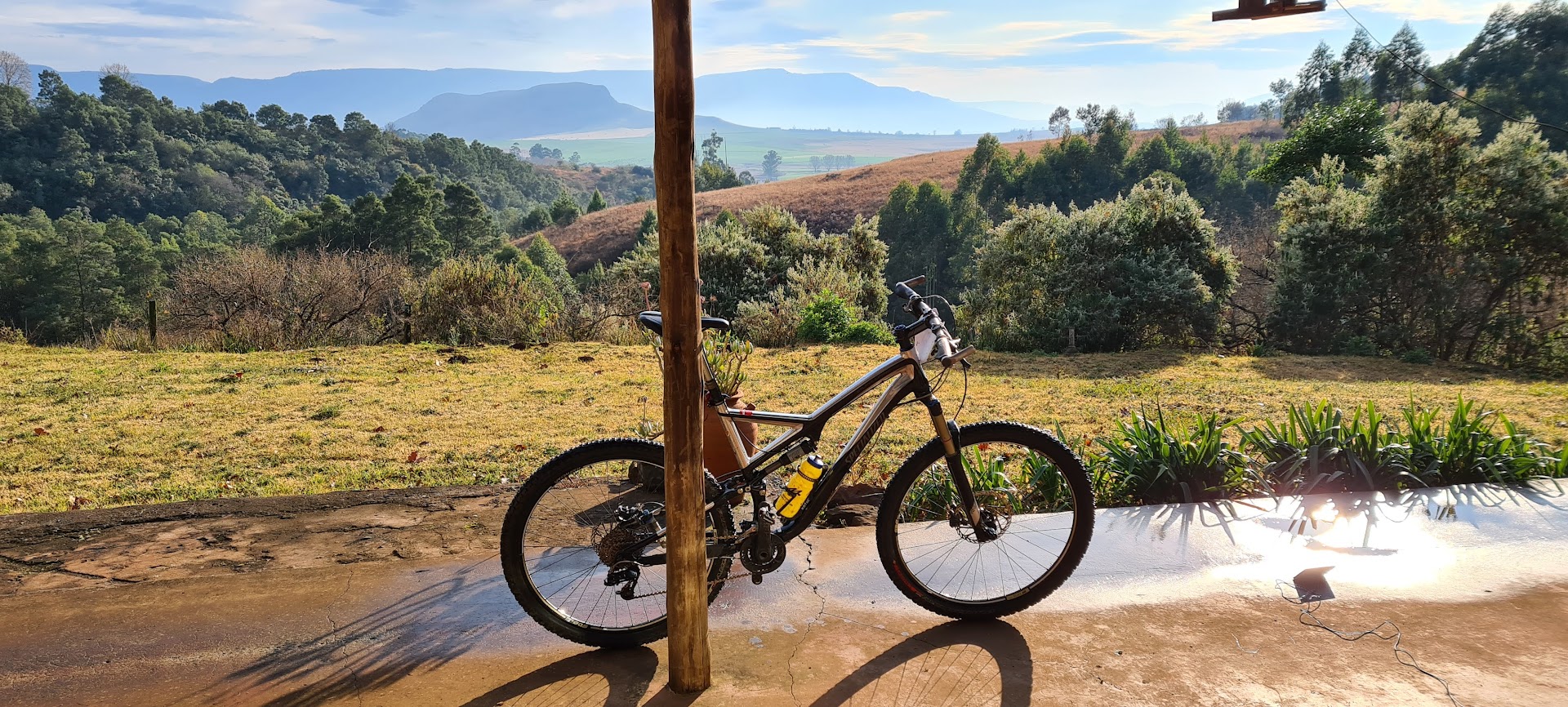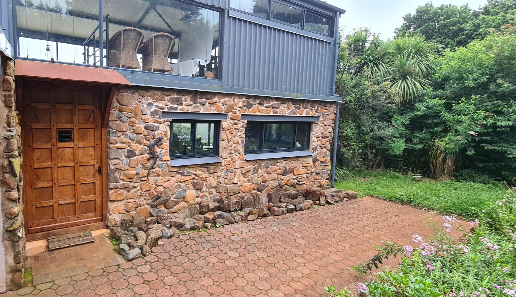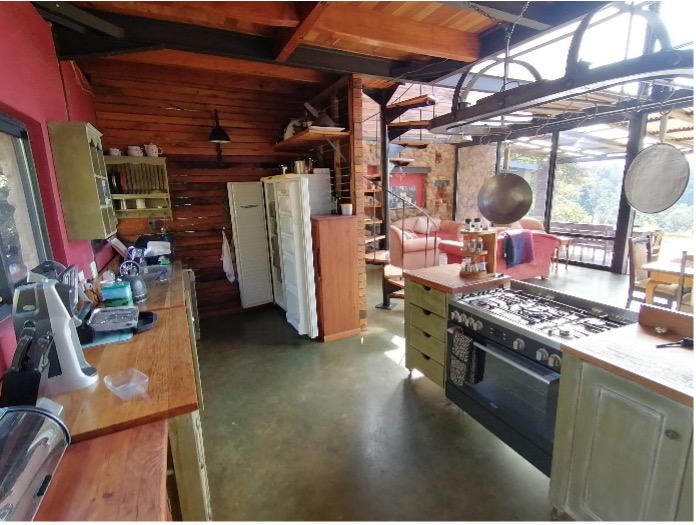This house rose from the ashes of 2007 Karkloof fires. A unique space with glass walls and superlative views across the Karkloof Valley, it is close to local mountain bike, hikes and trail runs