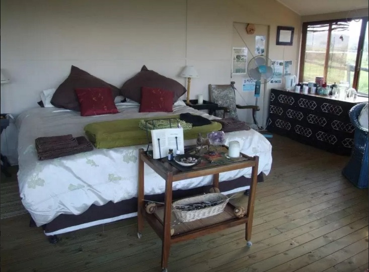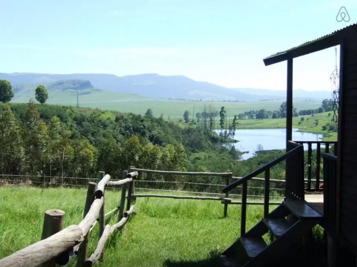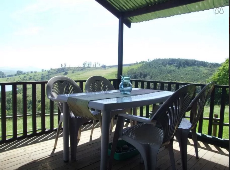 A more casual log cabin, The Studio sleeps 4 in a single living space with a king size bed and 2 singles. It includes a kitchenette and verandah. The bathroom is not en suite (25m away). The view of Loskop and the Karkloof Mountain is spectacular.